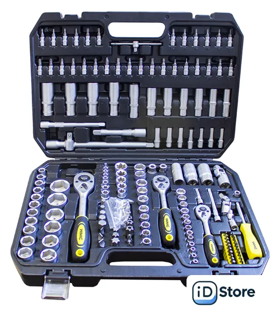 универсальный набор, 1/4", 3/8", 1/2", 171 предмет. Доставим по Минску в день заказа, при оформлении заявки до 14.00. Официальная гарантия.